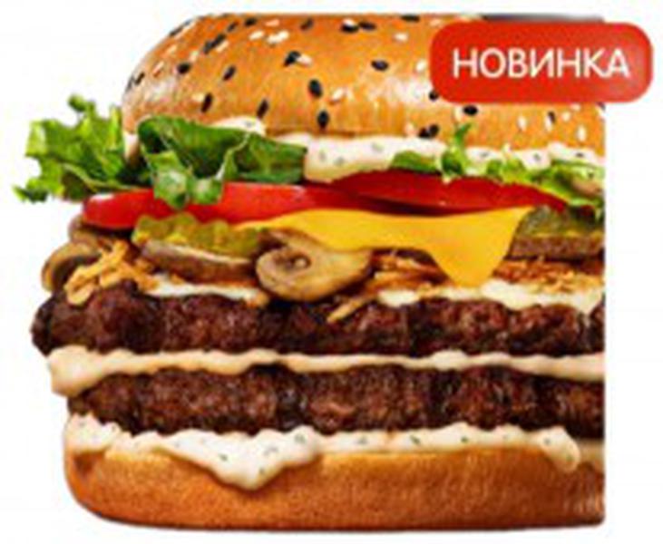 Состав: Спасаем леса Сибири вместе! Часть выручки с продажи коллекции «Сердце Сибири» мы направляем на восстановление прекрасных сибирских лесов, пострадавших от пожаров. Добрая новинка для тебя: двойной мраморный бифштекс из 100%-й говядины Абердин Ангус под жгучим томатным и густым сметанно-луковым соусами. Их дополняют: свежий салат Айсберг, спелые помидорки, любимый сыр Чеддер, лучок фри, ароматные шампиньоны гриль и маринованные огурчики под нежным соусом Пармезан — на булочке бриошь.