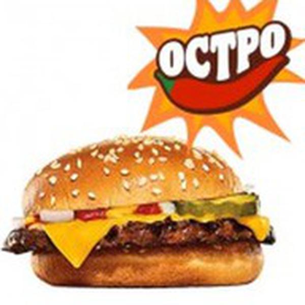 Состав: Это острая версия любимого Чизбургера — со жгучим соусом вместо кетчупа! Внутри бифштекс из 100%-й говядины под острым томатным соусом и горчицей с ломтиком расплавленного сыра, свежим рубленым луком и маринованным огурчиком.