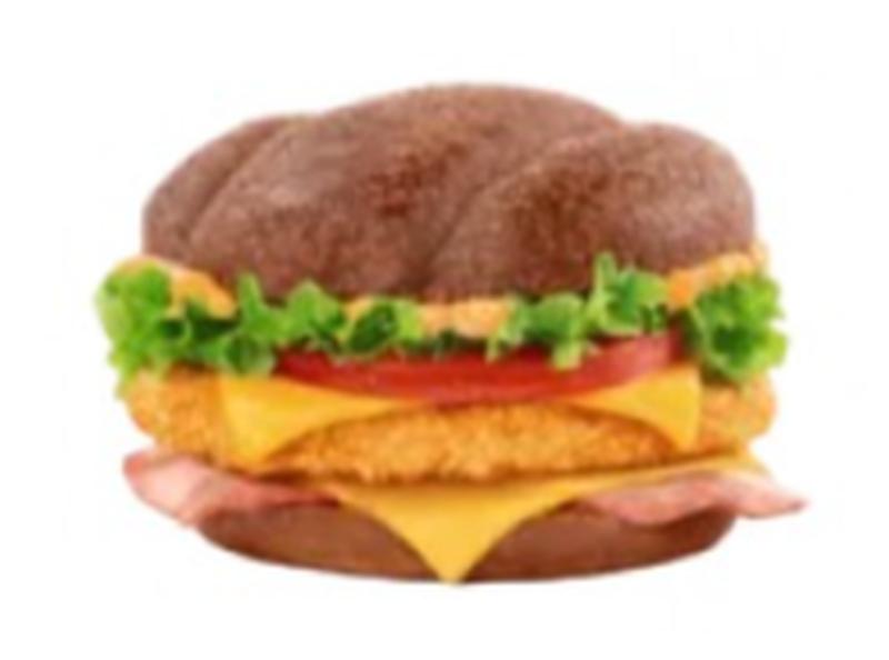 Состав: Бургер с сочной куриной котлетой в хрустящей панировке, ломтиком томата, свежим салатом, нежным сыром, яркой ноткой копченой индейки, уникальным соусом с ароматом малосольных огурчиков, и всё это на горячей, ржаной булочке с глазурью и гречневой посыпкой.