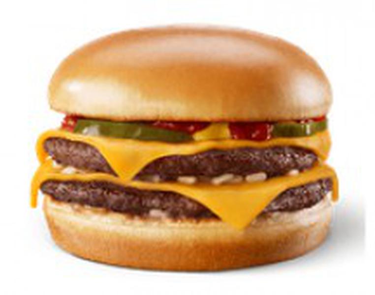 Состав: Два рубленых бифштекса из натуральной цельной говядины с двумя кусочками сыра Чеддер на карамелизованной булочке, заправленной горчицей, кетчупом, луком и двумя кусочками маринованного огурчика