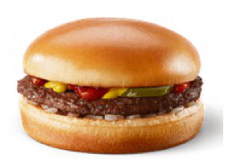 Состав: Рубленый бифштекс из натуральной цельной говядины на карамелизованной булочке, заправленной горчицей, кетчупом, луком и кусочком маринованного огурчика