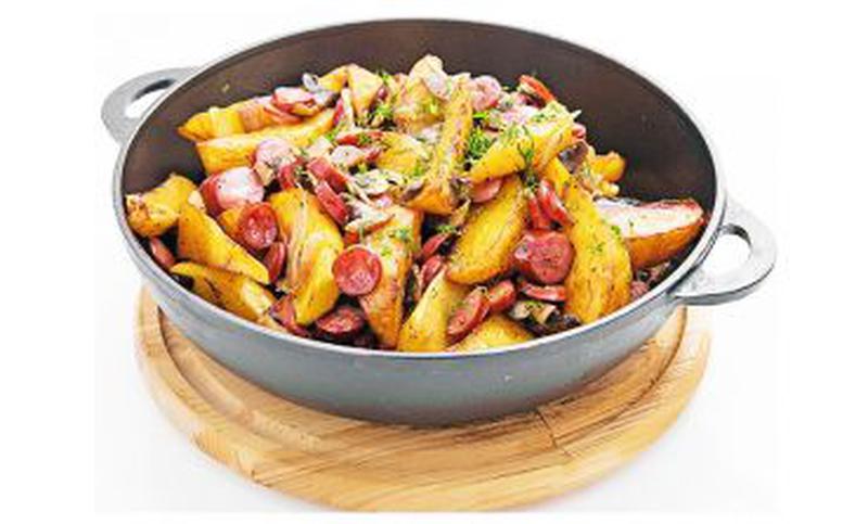 Состав: Жареная картошечка с охотничьими колбасками.