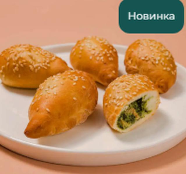 Состав: Набор из 10 пирожков. Начинка: сёмга, соус майонезный, рис, яйцо, лук, сыр сливочный, шпинат, соль, специи.