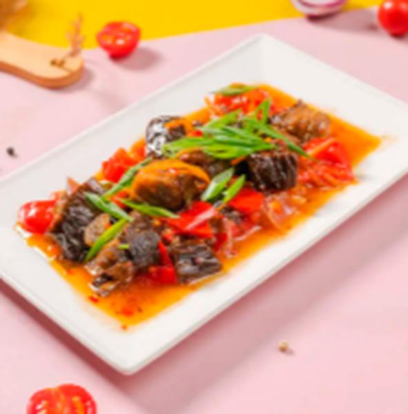 Состав: Обжаренные во фритюре баклажаны, болгарский перец, морковь по-корейски, обжаренный репчатый лук, чеснок, петрушка, подсолнечное масло, сладкий соус чили, соль