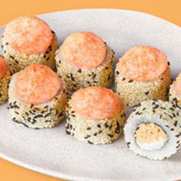 Состав: Блин тамаго, сливочный сыр, фирменный сырный соус (майонез, сыр пармезан, оранжевая икра масаго), кунжут, рис (рис, вода, заправка для риса), нори *Не забудьте заказать имбирь, васаби и соевый соус. Они не входят в стоимость заказа