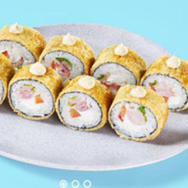 Состав: Сливочный сыр, зеленый лук, бекон, помидор, цезарь соус, темпурный кляр, панировочные сухари, рис, нори. *Не забудьте заказать имбирь, васаби и соевый соус. Они не входят в стоимость заказа.