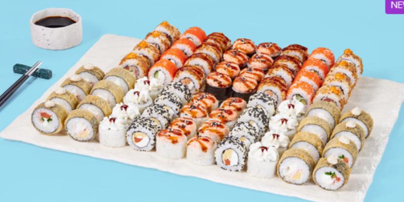 Состав: Ролл Цубаки (8 шт), Ролл Бао (8 шт), Ролл Белоснежка (8 шт), Царевна ролл (8 шт), Ролл Бали (8 шт), Ролл Флай-скай (8 шт), Ролл Сицилия (8 шт), Ролл Нежный с курицей (8 шт), Ролл Сакамото (8 шт). *Не забудьте заказать имбирь, васаби и соевый соус. Они не входят в стоимость заказа. *Внешний вид блюда может отличаться от фото на сайте.