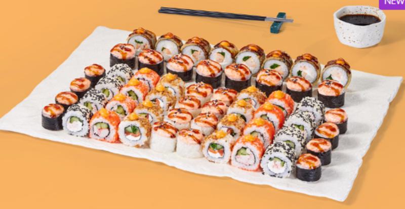 Состав: Ролл Миссури (8 шт), Ролл Макото (8 шт), Ролл Сакана (8 шт), Ролл Южный (8 шт), Ролл Аква (8 шт), Ролл Сальвадор (8 шт), Ролл Окамото (мини) (8 шт). *Не забудьте заказать имбирь, васаби и соевый соус. Они не входят в стоимость заказа. *Внешний вид блюда может отличаться от фото на сайте.