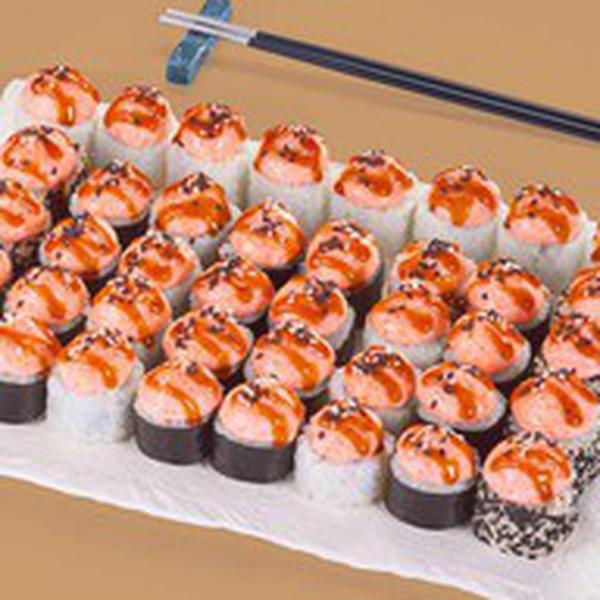 Состав: Нежный с курицей (8 шт.), Аква (8 шт.), Южный (8 шт.), СПА (8 шт.), Флай скай (8 шт.) *Не забудьте заказать имбирь, васаби и соевый соус. Они не входят в стоимость заказа.