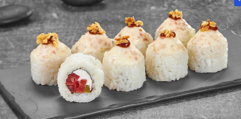 Состав: Сливочный сыр, перец халапеньо, помидор, монако с беконом, барбекю соус, лук фри, рис, нори
