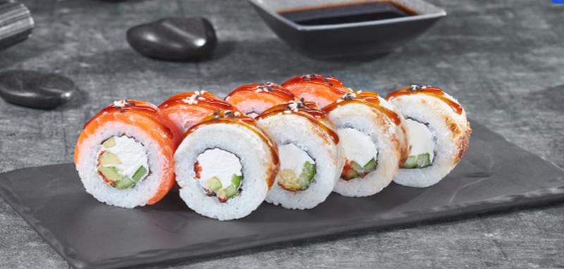 Состав: Угорь, лосось, сыр сливочный, огурцы, авокадо, икра масаго, соус унаги, кунжут, рис, нори. *Внешний вид блюда может отличаться от фото на сайте