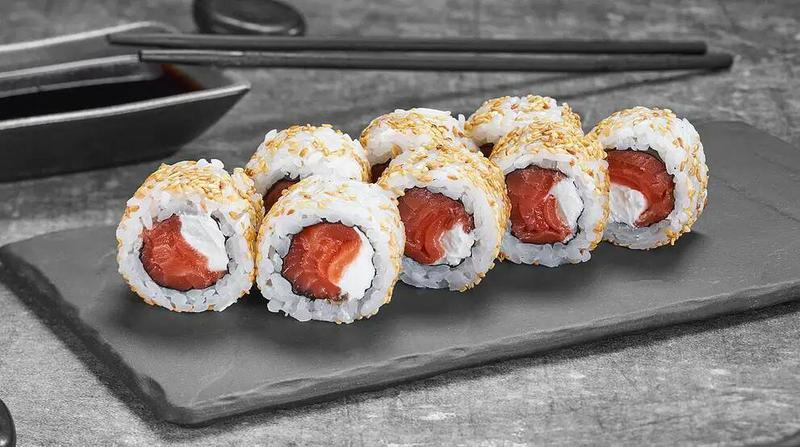 Состав: Лосось, сливочный сыр, кунжут, рис, нори