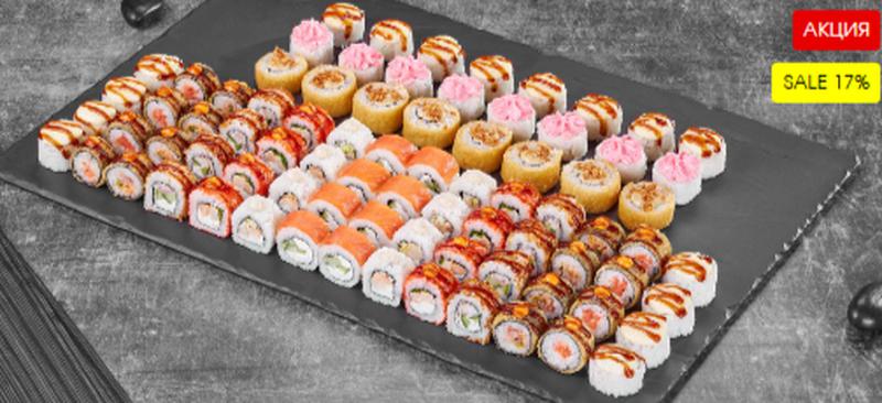 Состав: Ролл Филадельфия лайт сяке (8 шт), Ролл Куритос (8 шт), Ролл Дон бекон (8 шт), Ролл Лава с крабом (8 шт), Ролл Острый с курицей (8 шт), Ролл Чикен темпура (8 шт), Ролл Бекон лайт темпура (мини) (8 шт), Ролл Сяке лайт темпура (мини) (8 шт), Ролл Нежный с курицей запеченный (8 шт), Ролл Мистер крабс запеченный (8 шт). *Внешний вид блюда может отличаться от фото на сайте.