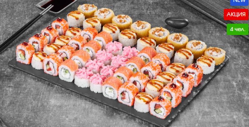 Состав: Ролл Филадельфия лайт сяке (8 шт), Ролл Калифорния микс (8 шт), Ролл Мистер барбекю (8 шт), Ролл Лава с креветкой (8 шт), Ролл Чикен темпура (8 шт), Ролл Нежный с курицей запеченный (8 шт), Ролл Сумоку запеченный (8 шт). *Внешний вид блюда может отличаться от фото на сайте.